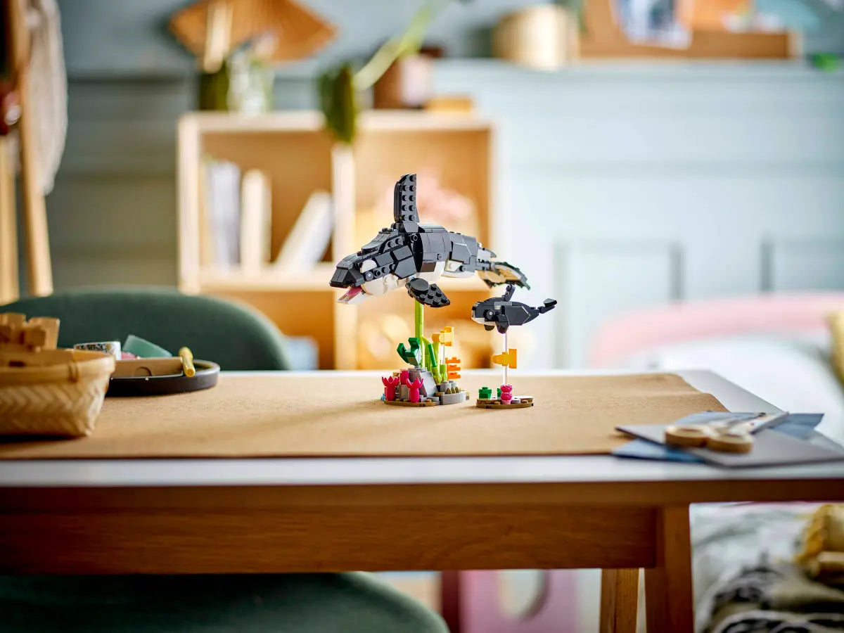 • Modèles pour jouer et à exposer – Lorsque le jeu est terminé, placez les figurines d’animaux LEGO® sur une étagère ou à côté d’un lit, avec 2 supports transparents fournis pour exposer la famille d’orques