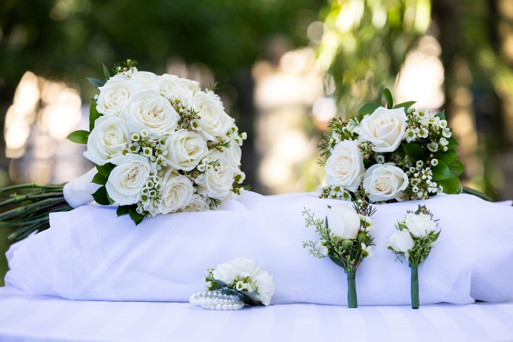 À noter qu'il est possible d'ajuster le forfait en fonction de vos besoins. Que ce soit les couleurs des fleurs ou l'ajout de bouquets, boutonnières, bracelets, centres de table, gerbes florales ou tout autre élément floral que vous souhaiteriez avoir.
